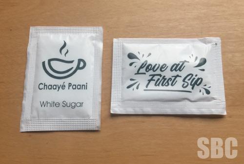 CHAAYE PAANI White sugar in sachets for this café chain offering a wide range of Asian teas, plus, Coffees, ice creams and a patisserie.