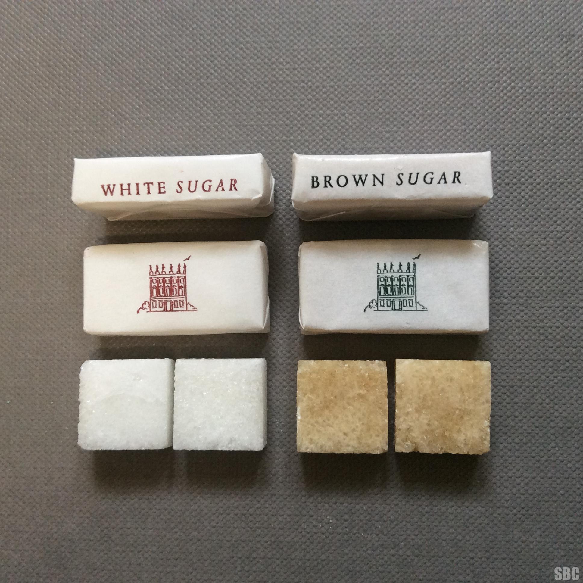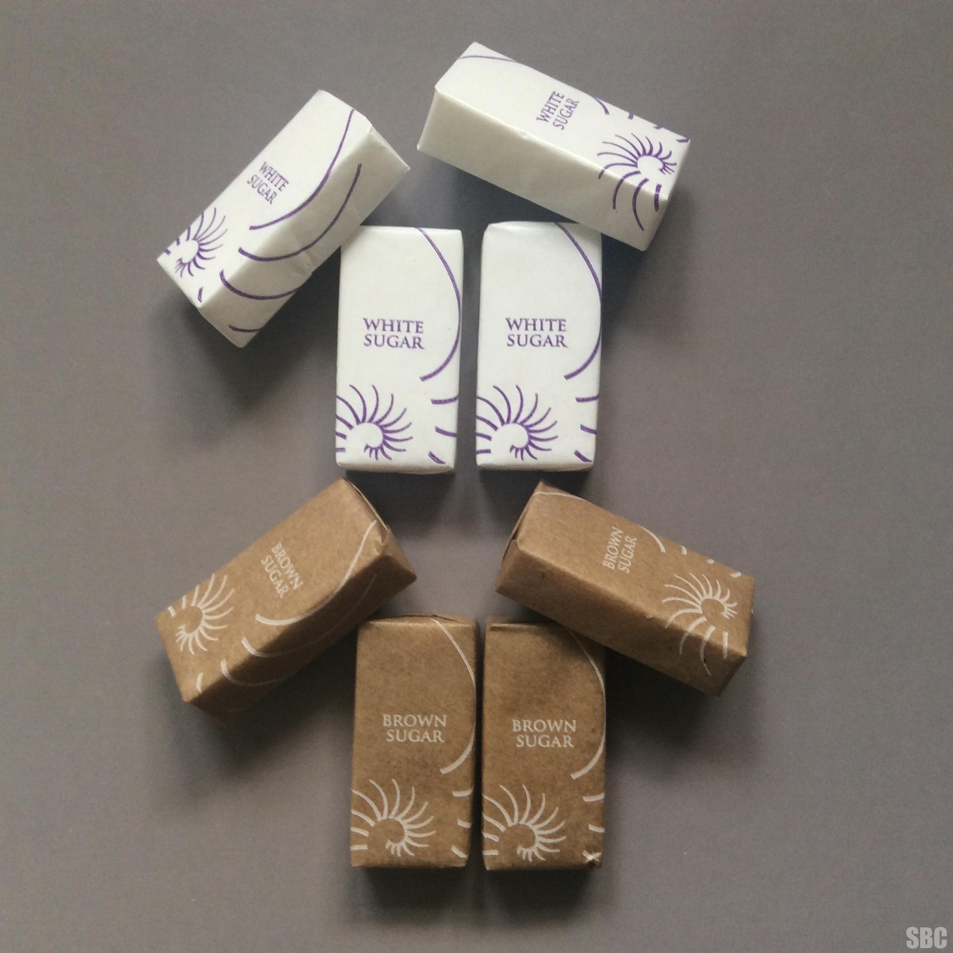 Available in white and brown sugar and are wrapped in